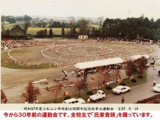 さて、自宅で調べものをしていたら1枚の写真に出会いました。ちょうど31年前の運動会の写真です。創立90周年記念の運動会でした。過日準備の写真を屋上から撮影しましたが、比べてみるとどうでしょう。テントの数と校庭に若干の芝生がある、ぐらいの違いでしょうか。大きな違いはないようです。「不易と流行」という言葉がありますが、運動会に取り組む人の思いは不易なもので、今もあの熱気は受け継がれています(*^_^*)