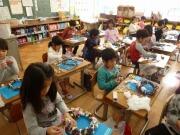 1年生の廊下側の掲示板にリースが飾られています。素材はさつまいものつるを使いました。オリジナルにデコレーションされていて大変きれいです。12月、そしてクリスマスの雰囲気です。自由授業参観の折にぜひご覧ください。3組はそのまさに制作中でした。掲示後は自宅に持ち帰ると思いますので、自宅のデコレーションにご活用ください。この世に一つしか逸品です(*^_^*)