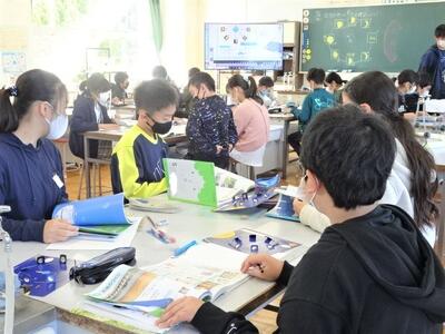 【5年生】1枚目の写真は、総合的な学習の時間の一コマです。「探ろう環境問題」という単元を設定しており、この後かなりの時間をかけて課題解決のための学習を進めていきます。今日は、課題を整理するために、環境問題の現状について調べたことを発表していました。