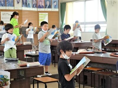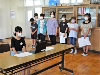 【6年生】1枚目の写真は、児童朝会を行っている場面です。委員会活動の紹介の2回目になります。リモートによる発表でしたが、さすがは各委員会の代表者たちです。自分が所属する委員会の活動についてしっかりと説明していました。
