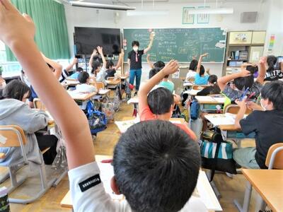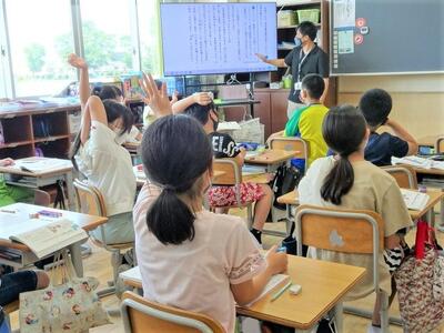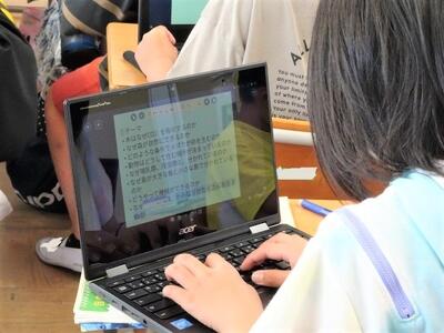 【5年生】1枚目の写真は、理科の時間に「自由研究」のテーマをいろいろと考えている場面です。栃木県らしい「雷」や「風」などの自然現象をテーマにしたり、「人」や「木」などの謎をテーマにしたりと、いろいろな考えをロイロノートに書いていました。