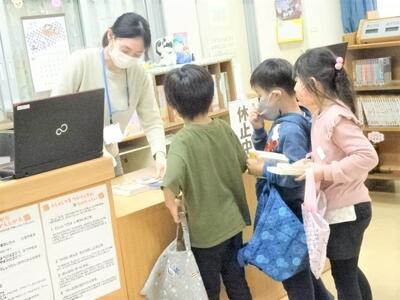 【1年生】金曜日は、一週間の終わりの日なので、今週読んだ本を返却して来週の本を借りています。ちょっとした隙間時間にも本に親しむことができるようにしているのです。1年生も、いろいろなジャンルの本に挑戦しています。本好きな子どもたちがたくさんいます。