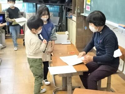【5年生】1枚目の写真は、音楽の時間にリコーダーのテストをしている様子です。今の子どもたちは、楽器の扱いがとても上手で指遣いがとてもなめらかです。演奏曲は、「星笛」という曲でした。リズムに合わせて素敵な曲を聴かせてくれました。