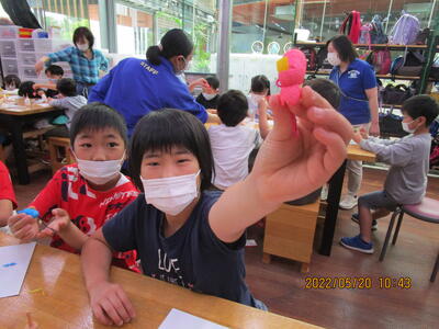20日(金)に2年生の遠足がありました。2年生の行き先は、なかがわ水遊園です。水遊園では、じゃこのモンスターを見つけたり、繭でキャラクターを作ったりする活動も行いました。もちろんメインは、淡水魚の水族館です。