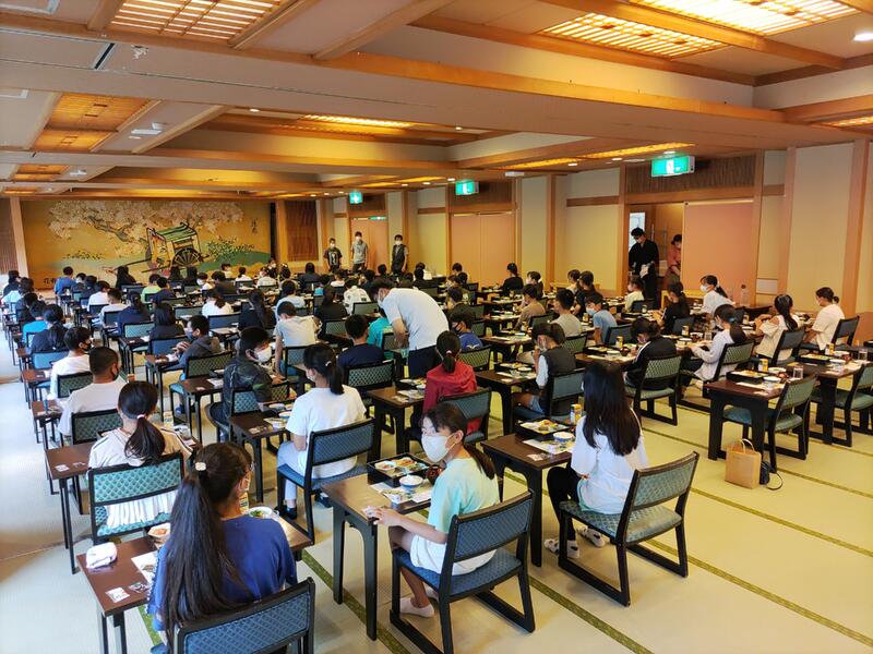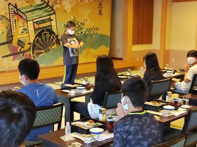 おはようございます。朝、六時に起床し、朝食をいただいています。子どもたちは、朝から元気で、しっかりもりもりと食べています。