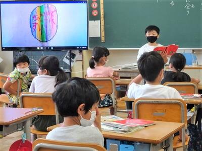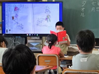 今日は、2年生の国語科「あったらいいな こんなもの」の学習です。これは、「あるといいな」と思うものを考えて絵に描き、その道具の効果を短い文で表して、友だちに発表するという内容です。写真は、その発表の様子です。しっかりと説明した後に、いろいろな質問を受けていました。