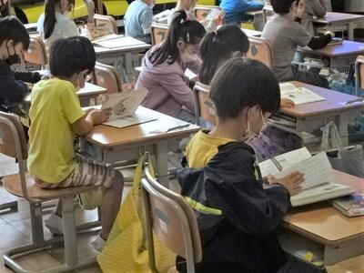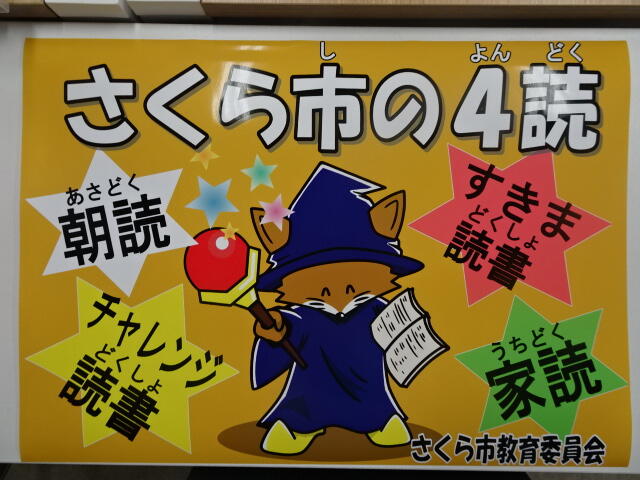 【朝の活動】今日の朝の学習は「読書」です。さくら市では、「さくら市の4読」を進めています。4読とは、「朝読」「すきま読書」「チャレンジ読書」「家読」の4つです。今日は、まさに「朝読」です。真剣に読む子どもたちの姿が見られました。