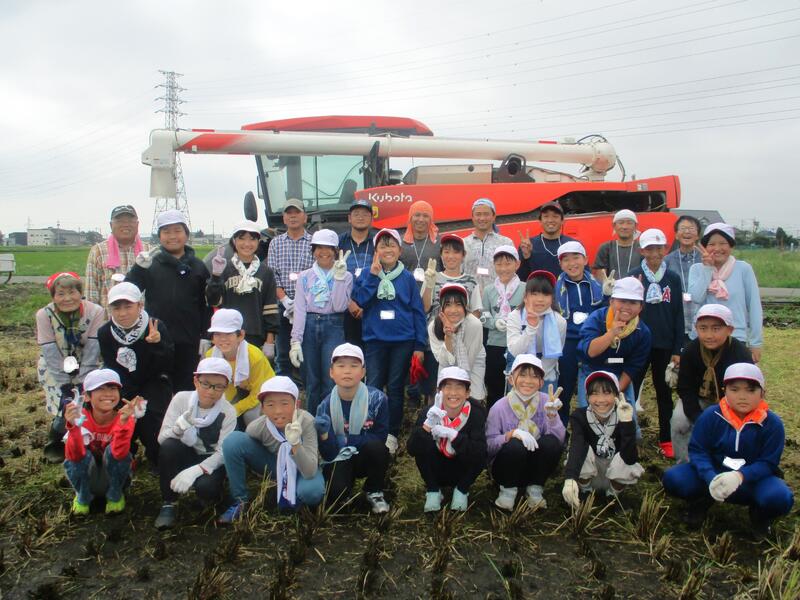 9月17日(火)に、5年生の総合的な学習の時間の活動で「稲刈り」を実施しました。たくさんの地域の皆様(稲刈りボランティア)に協力をいただき、育った稲を刈るという貴重な体験をすることができました。