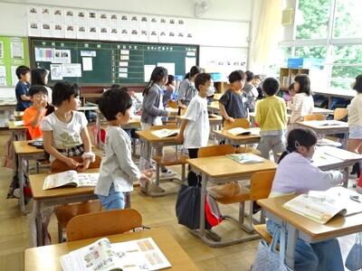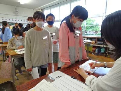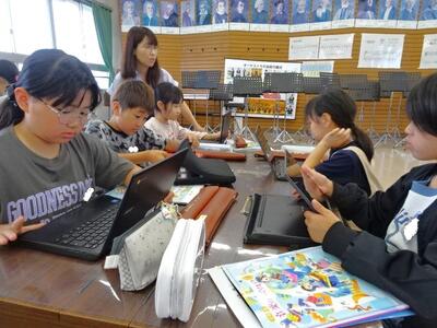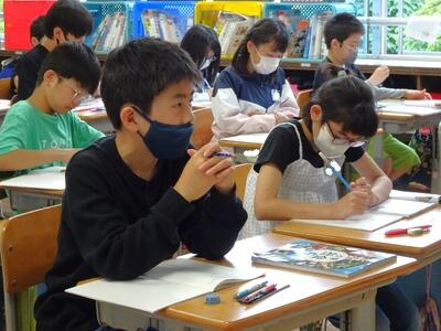 【5年生】1枚目の写真は、理科の「メダカのたんじょう」の学習の様子です。待望のメダカのたまごが産み付けられました。今日は、電子顕微鏡でたまごの様子を観察しました。