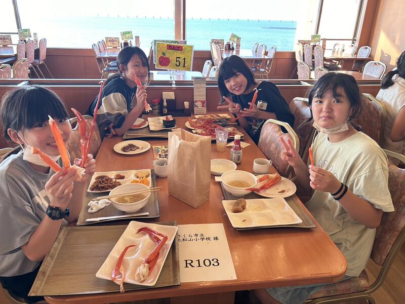 ホテルに到着し、すぐに夕食になりました。バイキングなので、子どもたちも大喜びです。