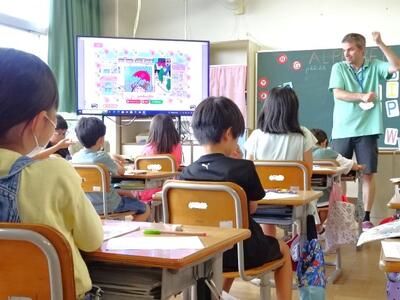 【3年生】1枚目と2枚目の写真は、外国語活動の学習の様子です。今日は、アルファベットについて学習しました。最後は、教科書の差しの中から、アルファベットを見つけ出しました。