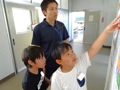 【4・5・6・7組】1枚目の写真は、2年生国語の「みのまわりのものを読もう」の学習の様子です。今日は、教室を飛び出して、校舎内の標識やポスターなどを確認しました。
