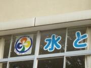 社会科の「水の学習」です。水処理センターで説明を聞いています。