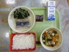 さて、2日連続のお楽しみメニューから今日はオーソドックスな給食です。なめこのみそ汁ですがふんだんになめこが使われ、とうふ、わかめとミックスされ、ごはんと相性がたいへんいいですね。和え物は桜エビがワンポイントとなり彩りも鮮やかです。イカ天ぷらの子どもたちの好み度はどうでしょうか。堅さとさくさく感もあり、たれをごはんに染みらせ美味しくいただきました。