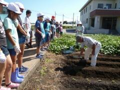 運動会でちょっと計画を延ばしていた食育プロジェクトですが、今日6年生に目的などを説明して大根の種を蒔きました。種苗組合から谷中さん、ボランテイアとして舟本さんにお出でいただき、野菜の栄養、野菜作り等を食育の面から講話お聞きし、実際にご指導をいただきながら作業を行いました。ブロッコリー・レタスを含めて今後世話をしながら収穫をしていきたいと考えています。大根については11月頃収穫祭として大根パーテイーを計画しています。生きて働く力を育む教育が日々実践されています(^_^)v
