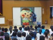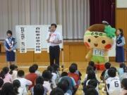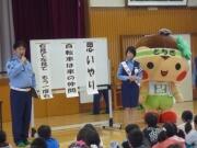 今日は交通安全教室(4~6年)です。4時間目写真のとおり楽しく,そして有意義な時間を過ごすことができました。涼 風花さんから「安」を書く場合のポイント、そして書の心得を学びました。講話ではさくら警察署の交通課長さんと風花さんがトーク形式で交通安全の大切さを説明しました。色紙をいただき、記念品もプレゼントとラッキーな行事となりました。とちまるくんの登場にもびっくりしました。交通安全週間は30日まであります。交通安全の誓いをあらためて実行させたいと思います。