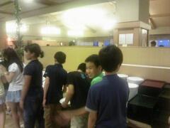 ホテルでは、豊富なバイキングで皆さんおかわりをしていました。アイスクリームが人気です。富士山が海の上にくっきり浮かんでいます。