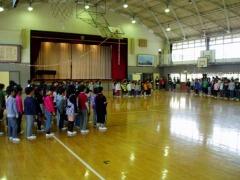2校時に、臨時の避難訓練を実施しました。5月13日にも、避難訓練を計画していますが、今回は、避難経路や、避難場所の確認のために実施しました。避難場所に整列するまでに、5分3秒でできました。避難するときに大切なこととして、「目、耳、心」について話しました。「何がおきているのかしっかり見つめる目をもとう」、「どんな連絡があるのかしっかり聞ける耳をもとう」、「どんなことを考えて行動するのか判断できる心をもとう」。私たち上松山小学校の教職員は、子どもたちの安全を常に願っています。