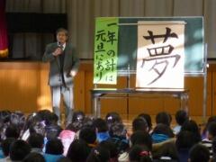 寒い体育館に、全児童が集合しました。真っ先に、6年生、5年生が入場して、整然と整列している中に、下級生が入場してきました。素晴らしい態度で、2012年がスタートできました。私からは、「一年の計は元旦にあり」と「夢」について話しました。「どんな小さなこととでも、計画をしっかりと立てて、継続してがんばって欲しい。」ことと、「6年生に、自分の夢を書いて欲しい。」ことを話しました。学習指導主任の君島先生からは、「それぞれの学年で覚える漢字をしっかり身につけよう」というお話がありました。児童指導主任の羽吉先生からは、「あいさつの大切さ」についてのお話がありました。体育館中に元気な「おはようございます」のあいさつが響きわたりました。毎朝あいさつ運動をがんばっている、5年生の「あいさつボランティア」の紹介もありました。何か、とても心があたたかくなった全校集会でした。