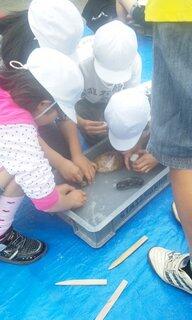 その後、ふれあい広場で動物たちに餌をあげたり抱っこしたりしました。
