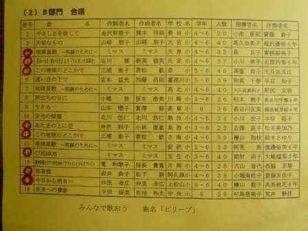 おめでとうございます。上松山小学校合唱部が県大会の出場を決定しました。18校が参加したB部門で、県大会参加8校に決まりました。どの学校も素晴らしい発表をした中での出場権獲得は素晴らしいことだと思います。塩谷地区の代表校として、県大会でも素晴らしいパフォーマンスを披露してくれるものと期待しています。子どもたちのがんばりに感謝、感謝です。