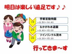 明日(16日)はすでにご案内のとおり1~3年生の遠足があります。4年生は那須への宿泊学習。5年生が本日帰校のとちぎ海浜自然の家の宿泊学習、そして6年生が鎌倉・東京方面の修学旅行となります。それぞれの行事のねらいにそって思い出に残るひとときとしてほしいと思います。遠足についても可能な範囲で活動の様子をご紹介します(^_^)v
