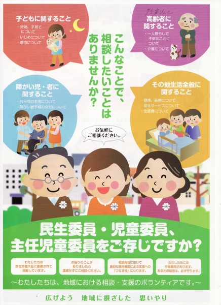 基本的なことで知らないとあらためて思いました。大変勉強になりました。さくら市から委嘱されるとはいいますが、ボランテイア的なことも多いようです。リーフレットにもあるように「わたしたちは(民生・児童委員)地域における相談・支援のボランテイア」として活動していることがわかりました。いつも地域を見守る、民生・児童委員の皆さんにあらためて御礼申し上げます