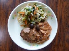 献立名:ごはん ♡牛乳 ハンバーグきのこソース ごまずあえ じゃがいものみそ汁