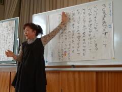 今日は稲刈りともうひとつの行事、「4年生親子ふれあい教室」が実施されました。4年生は総合的な学習の時間に「福祉」の学習を行っています。今日は講師の先生をお招きして、親子で手話の勉強をしました。簡単なあいさつ、自己紹介そして歌と貴重な体験をしました。ひとつの啓発活動としてすばらしいひとときであったと思います(^_^)v