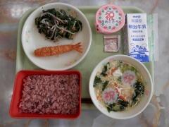 献立名:せきはん ごましお ♡牛乳 ☆えびフライ おひたし ☆かきたまじる ♡おいわいゼリー