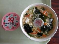 ということで今日は、卒業のお祝いメニューでした。お祝いのお赤飯にお祝いの文字が入ったナルト入りのかきたま汁、プリプリでカラッと揚げてあるえびフライにお祝いゼリーと、お祝いムード一色の給食でした。たくさん食べて、明日の卒業式に臨んでほしいと思います。そして、卒業して中学校に入学しても、好き嫌いをしないでしっかり食事をとり、健康な体をつくって、中学校生活も楽しく元気いっぱい過ごしてほしいと思います。