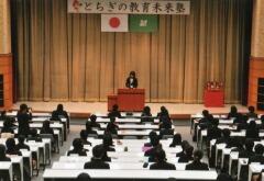 さて、今日は本校職員の活躍を一つ紹介します。栃木県では若手教員と教員を志望する学生が共に教師としての基礎を学ぶ「とちぎの教育未来塾」を開講しています。今年4年目となります。土曜日10回開催の自主研修となりますが、本校では蓮沼教諭が参加をしていました。学生時代の参加を含めて2回目となります。最終の閉校式で塾生237名を代表して、閉校のあいさつをしました。たいへんすばらしいあいさつとのお褒めの言葉をいただきました。子どもたちばかりでなく、教職員も頑張っています(^_^)v