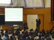 業間時の卒業式練習の後に、新井交通指導員より、高学年に向けて登校班の班長等交通安全のリーダーとなる4・5年生に心構えなどを話していただきました。班長・副班長としての心構え((1)目配り (2)気配り (3)あいさつ)、そして自転車の乗り方、帰宅時間などについて日頃の交通指導の経験を踏まえての内容でした。子どもたちは真剣に聴き入っていました。早速20日から自覚をもって行動を期待したいと思います(^_^)v