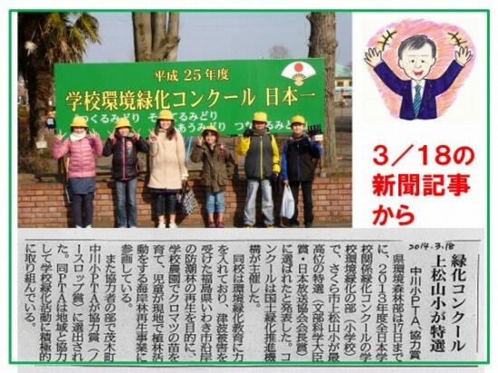 さて、卒業式の余韻もそこそこに学校も今日と24日の修了式の2日間となりました。担任の先生方には「学級の締め」をお願いしました。4月には「学級開き」の大切さを話しましたが、今度は締めとなります。話は変わって上記のシートですが、昨日下野新聞の県央版に本校の記事が掲載されていたので紹介します。緑化で開き、緑化で閉じた1年でもありました。こうした学校紹介(活動について)が、子どもの自信となりまた愛校心にもつながるものと思っています(^o^)