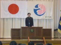 青空のよい天気ですが、風が冷たく体感気温はかなり低いですね。週末にはインフルエンザ等による欠席者も徐々に減少してきたところですので、休日の体調管理には十分注意をしてほしいと思います。