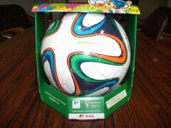 ブラジルでは熱戦が続いています。本日2日、郵便局様からブラジルワールドカップ仕様のサッカーボールをいただきました。大会が終わるまで図書室に飾り、その後みなさんで遊んでほしいです。