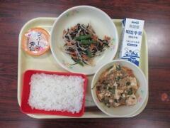 ご飯 牛乳 マーボーどうふ ひじきとツナのナムル あんにん豆腐