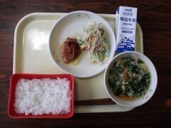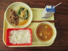 ご飯 牛乳 さわらのスタミナ焼き いそべ和え いなか汁