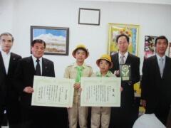11日(土)に全国緑の少年団活動発表大会が山形県鮭川村で開催され、全国小学校の代表5校が発表しました。本校からは児童2名が参加して、「未来につなぐ緑化活動」をテーマに、日頃の緑化活動について堂々と発表しました。国土緑化推進機構理事長佐々木毅様より「みどりの奨励賞」を受賞しました。