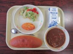 はちみつパン 牛乳 トマトオムレツ 豆入りサラダ ブラウンシチュー