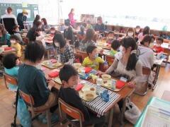 1年生は親子ふれあい活動で、2年生の教室をお借りして、保護者が給食を試食しました。