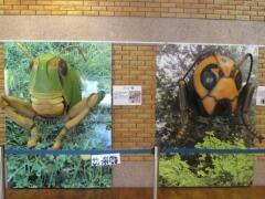 博物館に大きなスズメバチとバッタがいました。