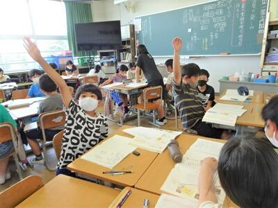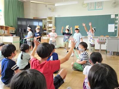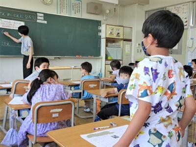 今日は、第1学期前半の終了日です。明日から、子どもたちが楽しみにしている「夏休み」が始まります。今日は、学習の場面もありますが、できるだけ「お楽しみ会」や「夏休みに向けた話や確認」の場面を中心にお伝えします。
