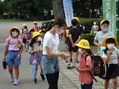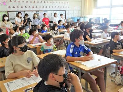 また、校長講話では、これまでの子どもたちの心や身体、行動等がしっかりと成長したことを確認しました。そして、これから夏休みに向かう子どもたちに向けて、「39日間の夏休みを事故なく過ごし、8月29日の朝に元気な顔をみせてください。」というお願いをしました。