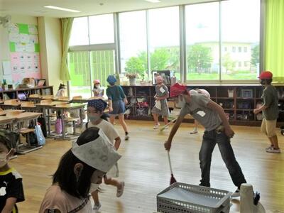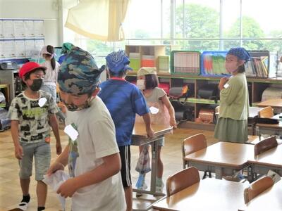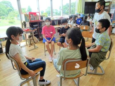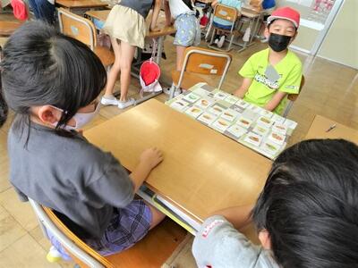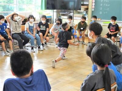 【4年生】もうすぐ夏休みです。1枚目の写真は、特別活動の時間に、お楽しみ会を行っている様子です。室内でのゲームの定番「フルーツバスケット」を行っていました。子どもたちも楽しそうです。クラスの結束も強まりますね。