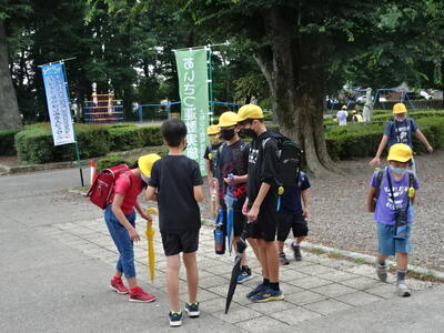 予定通り、武家屋敷に出発しました。上松山小学校に帰ります。