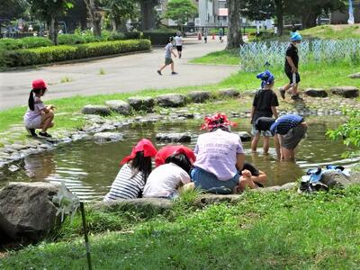 【かみまつタイム】今日の昼休みの後は、「かみまつタイム」で縦割り班での活動を行いました。熱中症指数も下がり、外での活動もしっかり行うことができました。