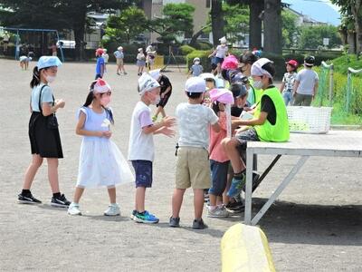 子どもたちが楽しみにしていたアイス、一番人気は「とちおとめアイス」でした。ちなみに、低学年の子どもたちには「ガリガリ君アイス」が人気だったようです。