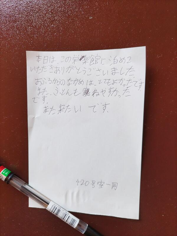 そうそう、子どもたちの忘れ物がないか部屋を回っていた時にこんなメモを見つけました。