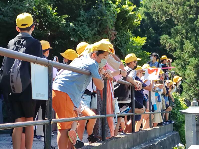 アクアマリンふくしまに到着しました。みんなとっても元気です。クラスごとに集合写真をして、班別の探索が始まりました。